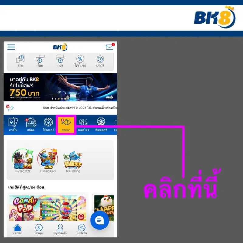 1. หลังจากสมัครสมาชิกและฝากเงินเรเียบร้อยแล้วให้เข้ามาที่หน้าหลักของ bk8 แล้วกดไปที่ “ยิงปลา” ในหน้านี้จะมีโปรดักของเกมยิงปลาให้เลือกอยู่สามโปรดักด้วยกันคือ FishingWar FishingGod และ GGFishing